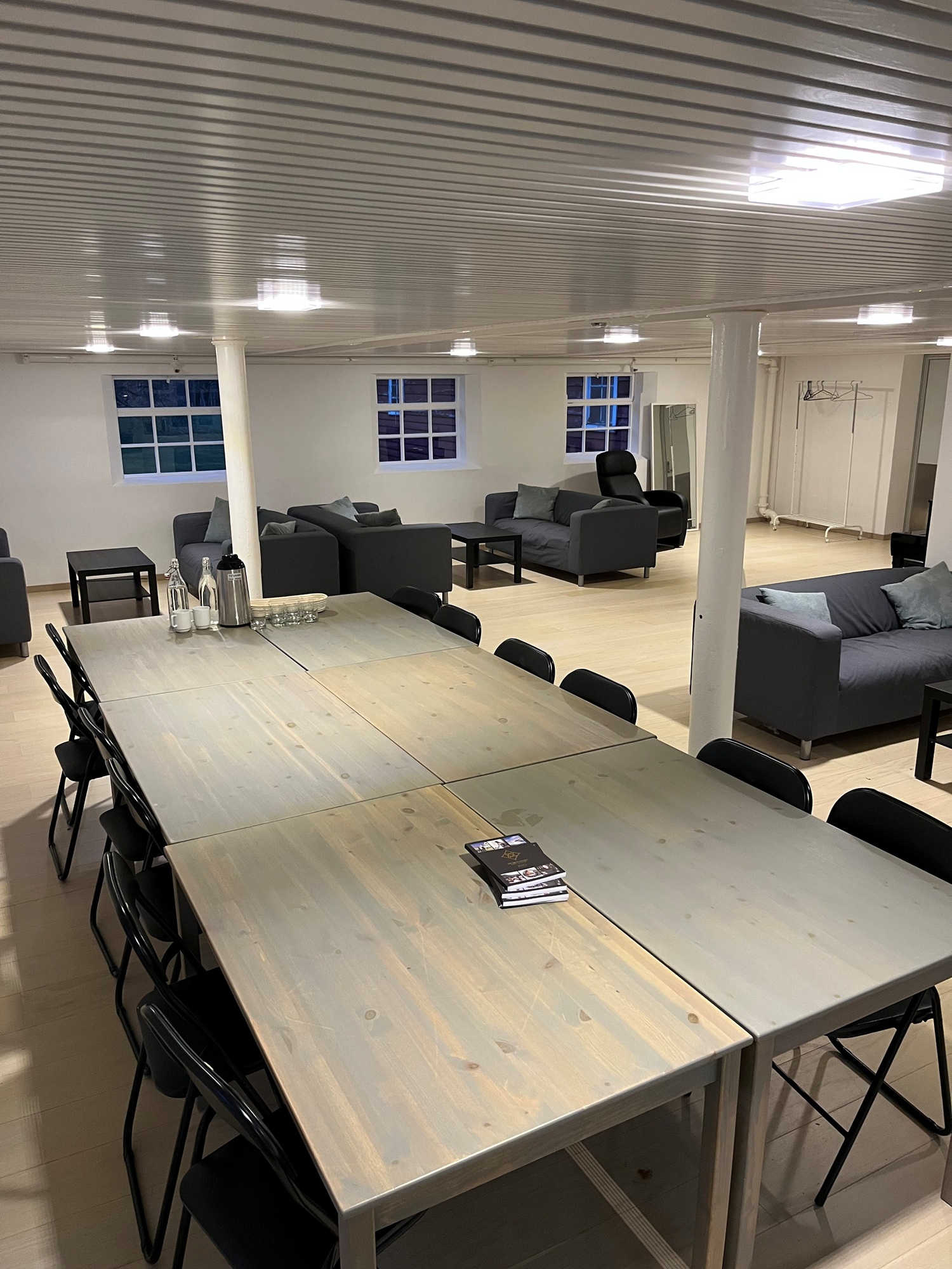 Møtelokalene befinner seg i et historisk miljø der arkitektur og atmosfære fra 1800-tallet er bevart, samtidig som rommene er oppgradert med moderne fasiliteter. Det finnes lokaler for mindre grupper på 10–20 personer, og større arrangement kan legges til Riddersalen med kapasitet til opptil 300 deltakere. Den gjennomførte estetikken, takhøyden og akustikken gir salen et uttrykk som styrker enhver presentasjon eller faglig økt.