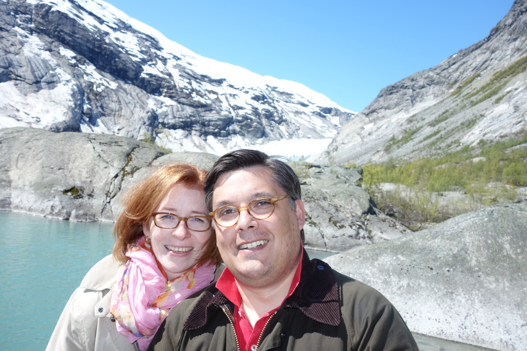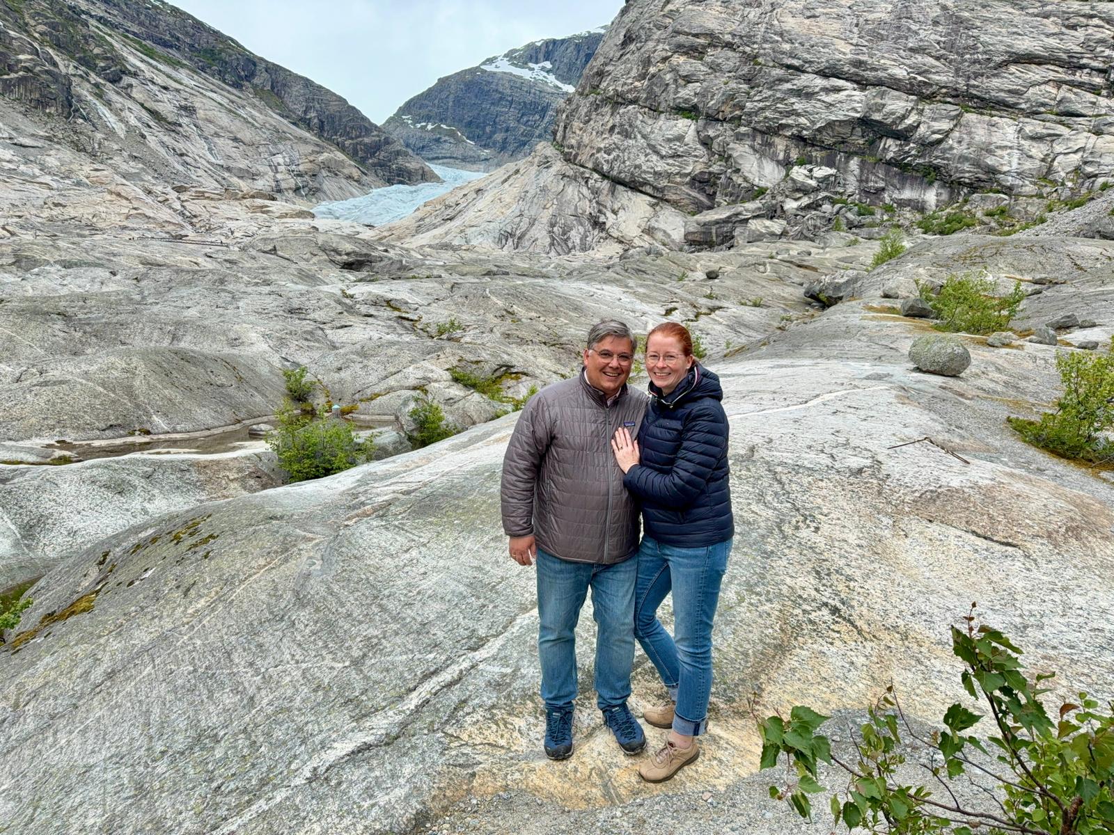 16 June 2005, our trip to Nigardsbreen, seemed like a normal day to outsiders: glacier museum, drive into the valley, boat, hike over rocks towards the ice. For us, it was not. One of us had a concrete plan, the other had no idea and was simply impressed by the landscape, the weather, and the rugged rocky world.